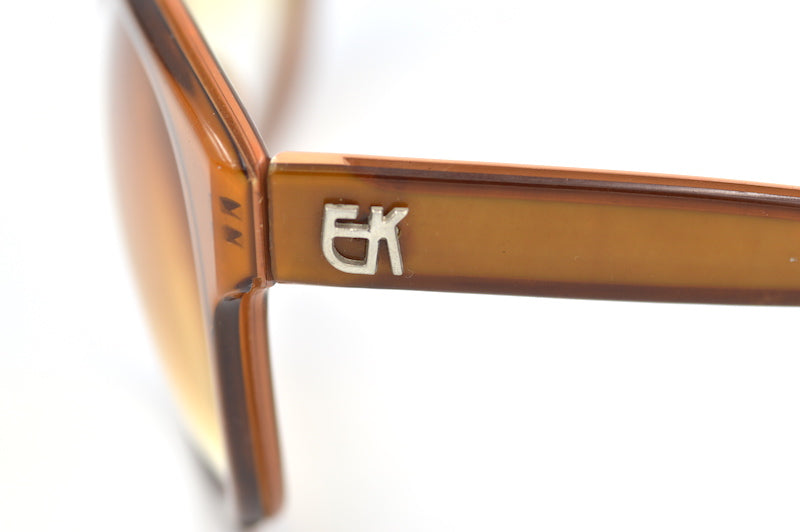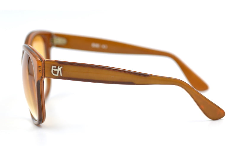We really love Emmanuelle Khanh 8080 vintage sunglasses in colour 43. This oversized square frame is giving serious 70s vibes. The orangey acetate frame is accompanied by orange graduated lenses. The sides feature the EK emblem. This frame is new unused vintage stock, but due to storage, there are some small marks on the lenses. This does not affect visibility and they look so good, it would be a shame to change them.