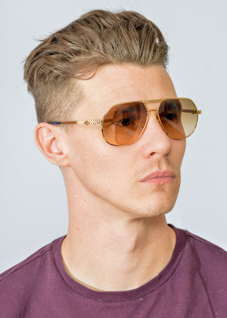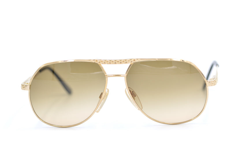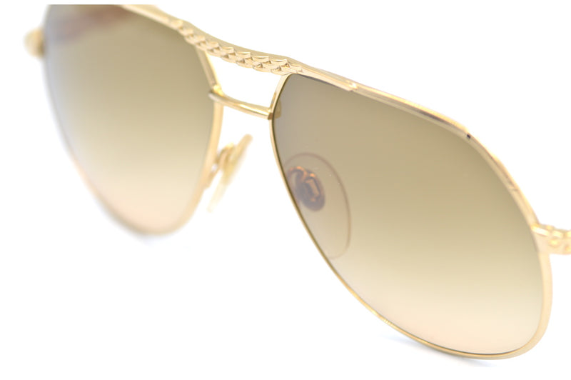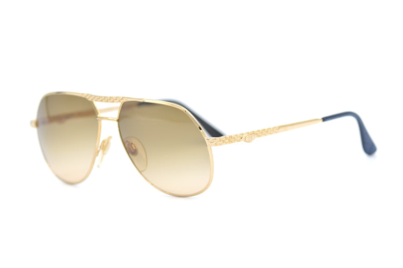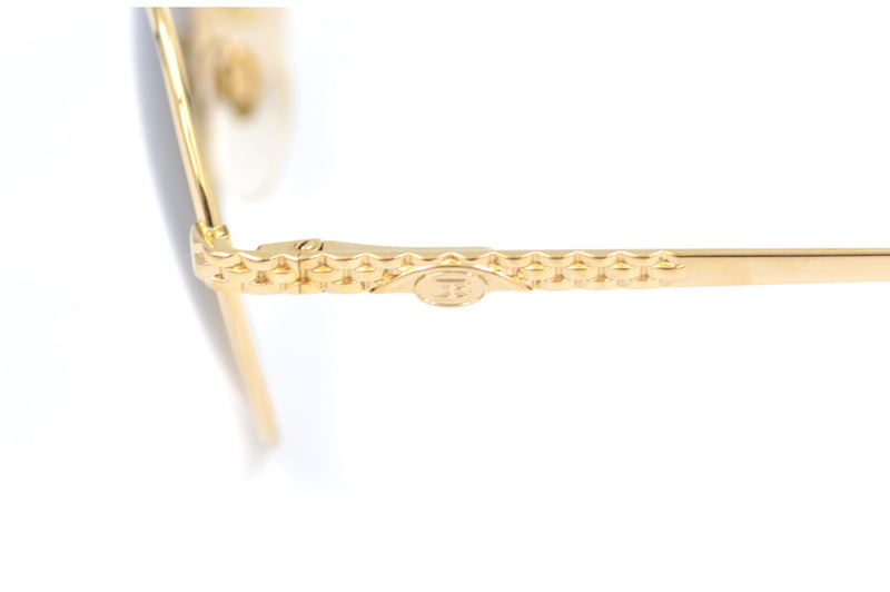 • Ettore Bugatti EB502 in colour 0104. A truly exquisite frame for a true collector. This vintage aviator frame is gold plated and was a limited edition from the 80s. This frame comes with its original packaging, hard case, pouch case, trace lens and pamphlet. The detail and quality of this limited edition frame is evident. Golden brown graduated lenses with 100% UV protection. The Ettore Bugatti emblem can be seen on the temporal sides. Check all the images to see how phenomenal these frames really are.