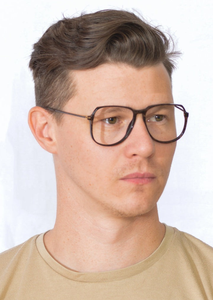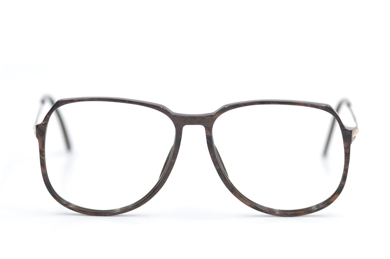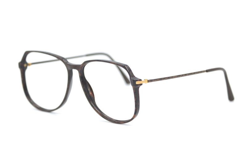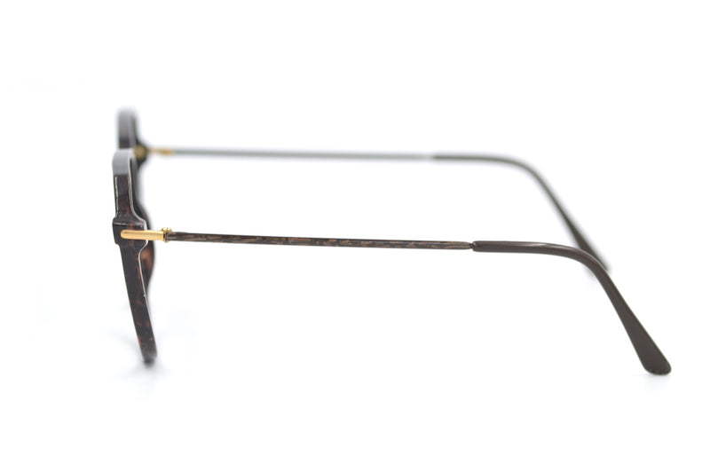 Manufactured in Germany we have this new old stock vintage Flair 104 frame. This combination frame features an acetate front and metal temporal sides. The finish is a dark brown marbled effect, and gold polished metal finishes the temporal edge. A high quality lightweight frame. Flair was founded in 1946 and continues to make luxurious, high quality frames to this day.