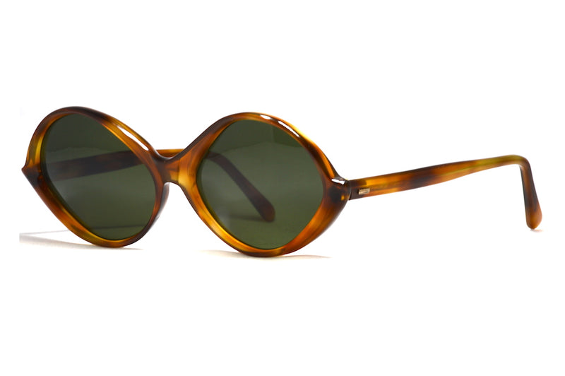 Manufactured in Great Britain for Paul Green we bring you Floriana, the oversized vintage sunglasses frame. This unusual oval shaped frame features mid set temples which give great height to the frame. The acetate frame is brown mottled and has been fitted with new G15 lenses which absorb 85% of light and offer UV400 protection, so not only do you look stylish, but you protect your eyes at the same time. This frame is generous on the width, which is great for those requiring a larger frame. A simple yet stylish frame.