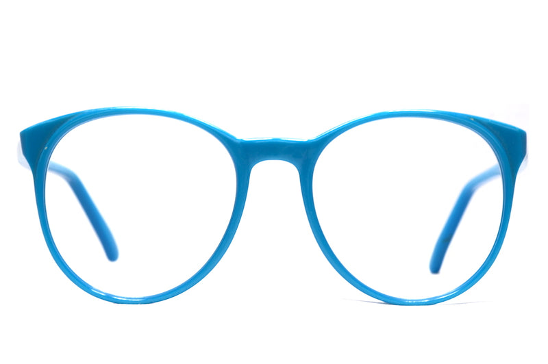 Make a statement with Franky Boy by Paul Green. This oversized round acetate is bright blue and bound to draw attention. Not for the faint hearted this cool vintage frame is in excellent condition.