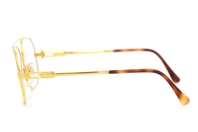 • Only 1 available. Gérald Genta Gold and Gold 01 in colour AU is a rare and highly desirable pair of vintage glasses. Gérald Genta was a Swiss wristwatch designer and his most famous designs were the Audemars Piguet Royal Ark and the Patek Philippe Nautilus. These frames are gold plated and have the seven digit authentication number engraved on the inside. The detail is in keeping with the Genta watch designs and the prototype spectacles were created in the Gérald Genta factory in Geneva, allowing him to cast a watchful eye, ensuring the designs were just perfect. This frame is in superb new old stock condition and is fitted with the original demo lenses. Manufactured in the early 90's in Italy. All spectacles supplied with a brand new spectacle case and a Retro Spectacle microfibre cleaning cloth.