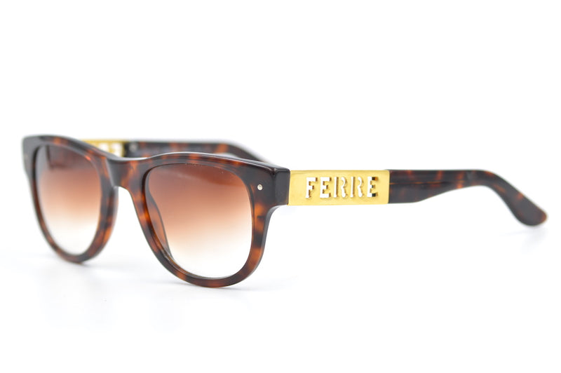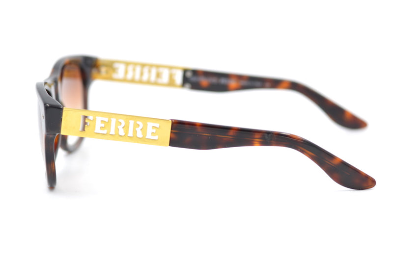 Gianfranco Ferre 375 are a cool retro vintage sunglasses frame from the 90s. Manufactured in Italy this frame is made of brown mottled acetate with gold bold branding to the temporal side. The warm brown lenses create a beautiful effect, and work in harmony with the frame. 100% UV protection. A great size for prescription sunglasses.