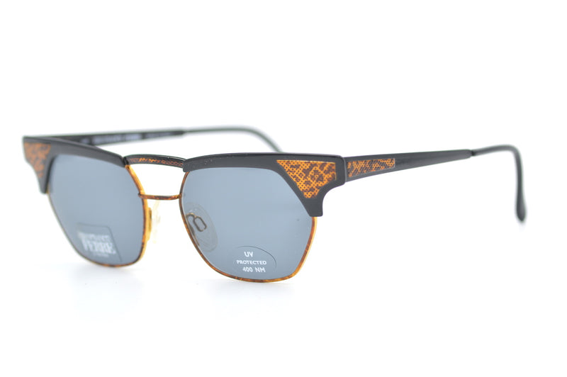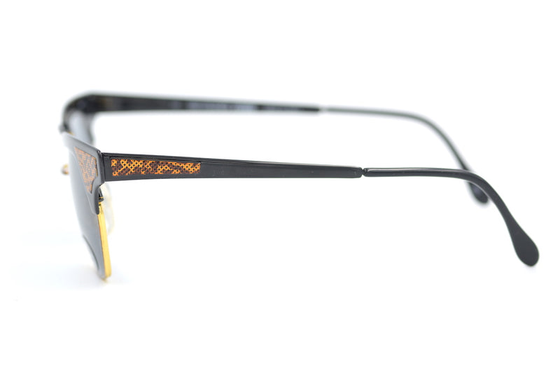 Gianfranco Ferre 84 rare vintage sunglasses. The lack metal frame has brown mottled lower rims and fabulous honeycomb detail to the front edges and temporal sides. Grey lenses provide 100% UV protection. A cool vintage frame for the summer. Please note this frame is small/medium fit.
