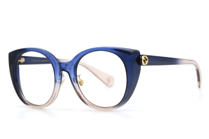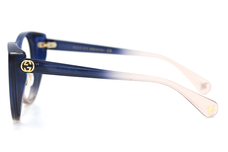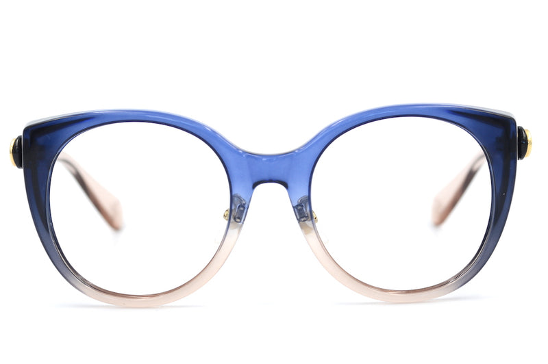Not vintage but nevertheless a fabulous frame from the fashion house Gucci. In excellent condition with little sign of wear this oversized frame started life as sunglasses. Manufactured in Italy, this frame is made of Optyl, a lightweight, durable and hypoallergenic material. Blue and pale pink rims look fabulous and the Gucci emblem can be seen to the temporal sides. This would look ace as oversized spectacles or sunglasses. Bee detailing symbolic to Gucci brand can also be seen on the end tips.