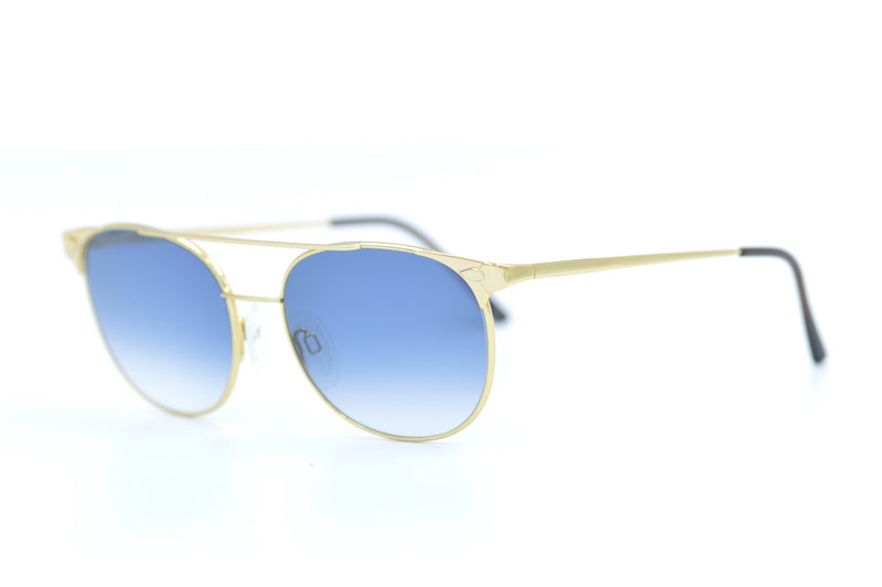 Gucci 1222 vintage sunglasses in colour 013. This polished gold rounded aviator has been fitted with grey/blue graduated lenses which provide 100% UV protection. Simplistic yet stylish, manufactured in Italy. Lightweight, the frame features a double brow bar for added strength and style.