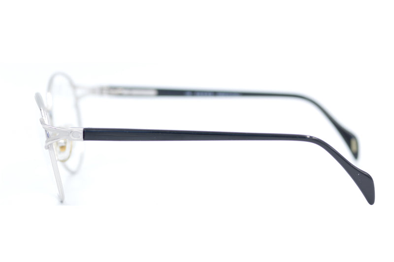 Gucci 2387 KS1 unisex vintage glasses. New old stock, manufactured to the highest quality in Italy. This combination frame features a silver metal front and black acetate sides. The Gucci signature is visible on the bridge and the emblem to the temporal sides. Retro Gucci not to be missed.