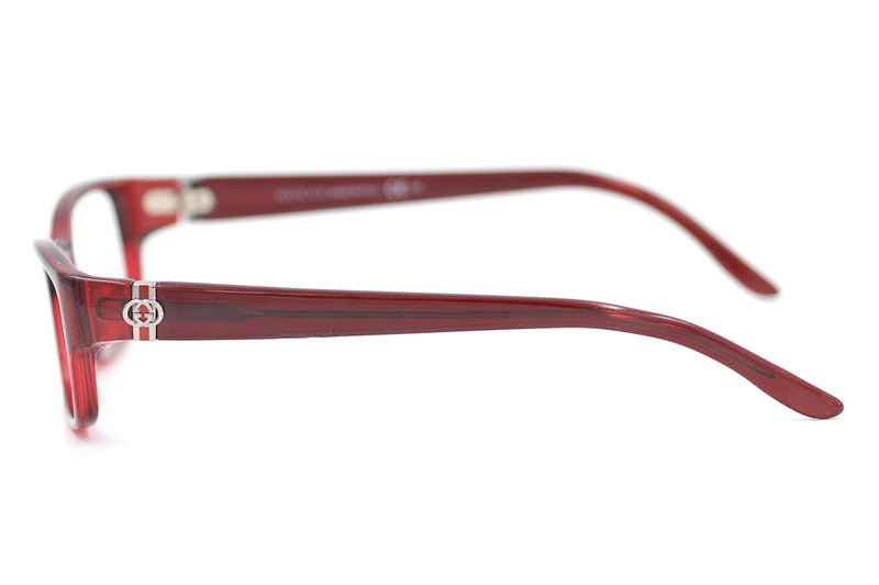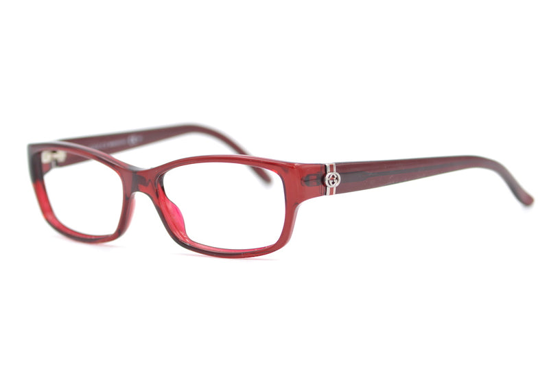 Gucci 3537 col E67 red acetate glasses. This awesome upcycled frame is simplistic in design, the shape is soft and elegant and the temple sides feature the Gucci emblem in gold. A stylish frame, not to be missed.