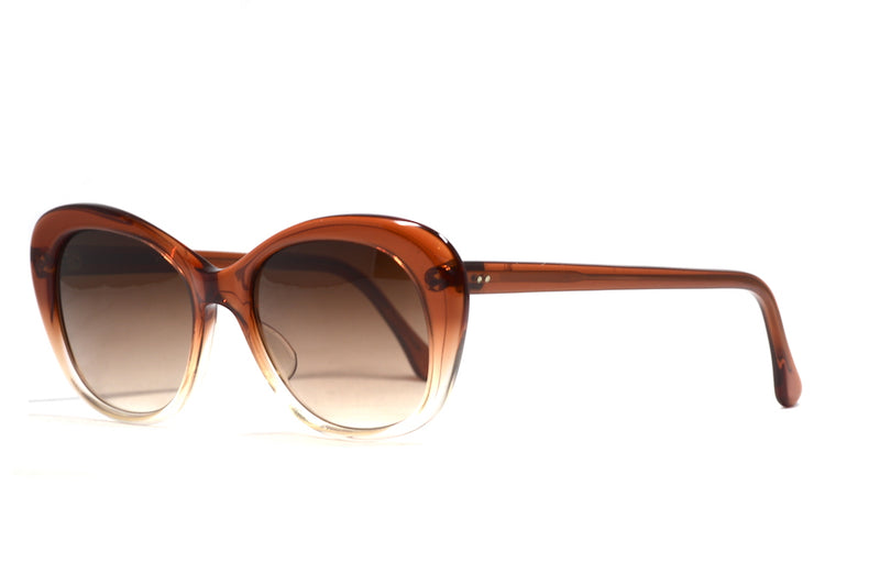 Step into true mid-century elegance with Harmony by Merx, and authentic pair of 1950s cat-eye sunglasses crafted in the UK. This beautifully sculpted frame captures the iconic feminine silhouette of the era, pairing vintage charm with timeless sophistication. Fitted with Brown graduated lenses offing 100% UV protection, these sunglasses balance style with everyday practicality. Excellent vintage condition.