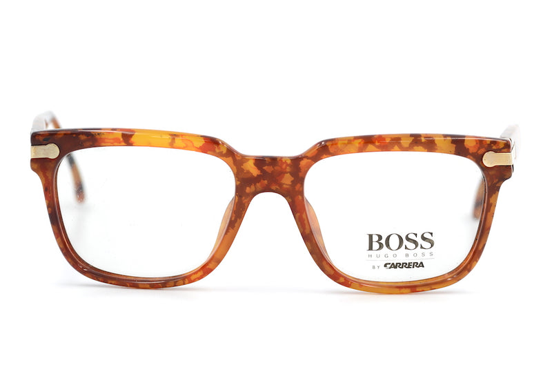 Hugo Boss by Carrera 5106 vintage glasses frame in colour 13. This warm brown mottled frame is made of Optyl, a lightweight, durable and hypoallergenic material. The temporal sides feature the Boss branding , the bridge and sides are high set. Manufactured in Germany, this new old stock frame is in superb condition.