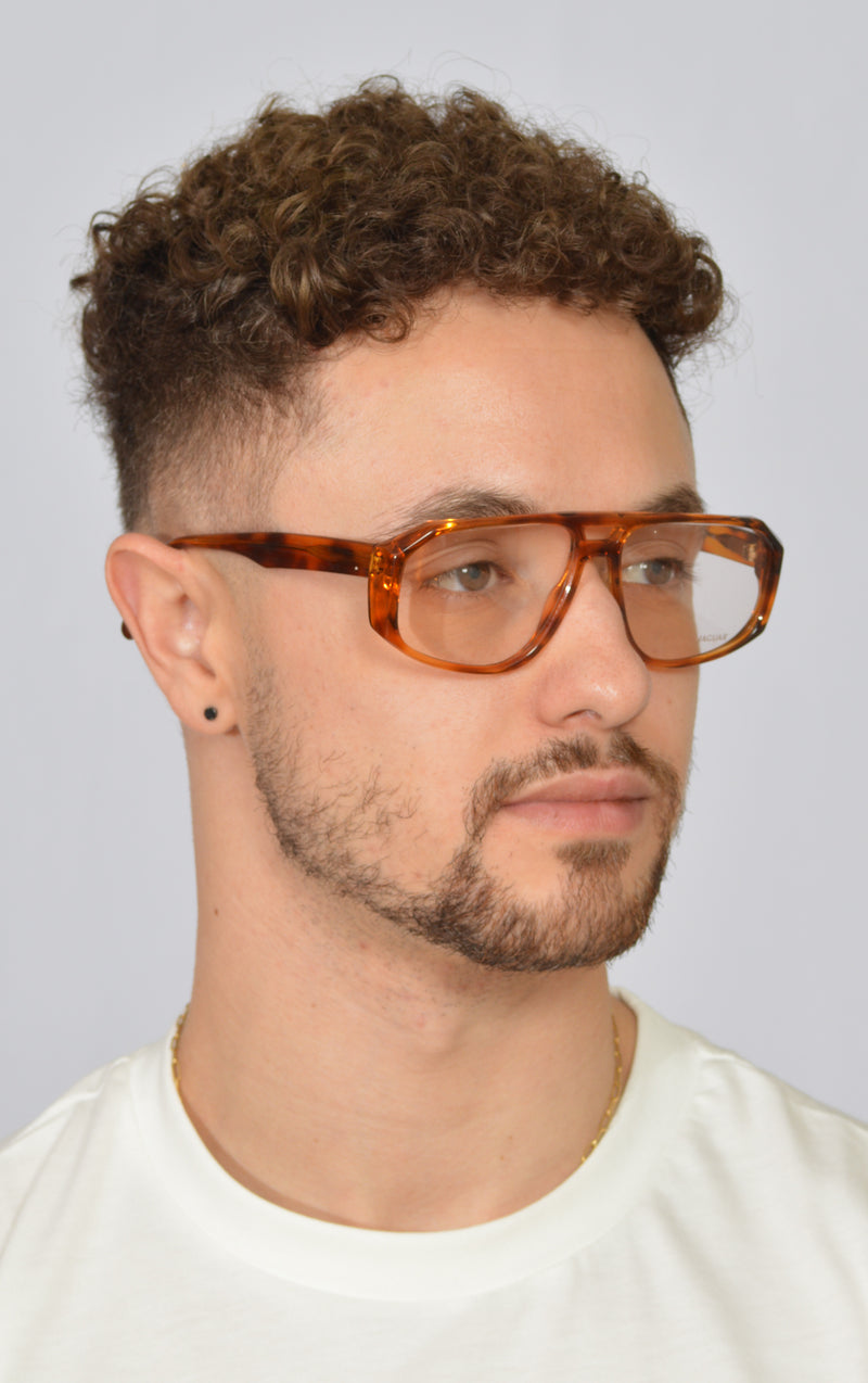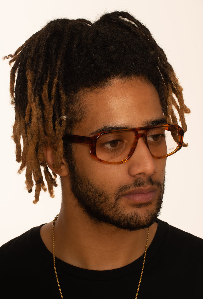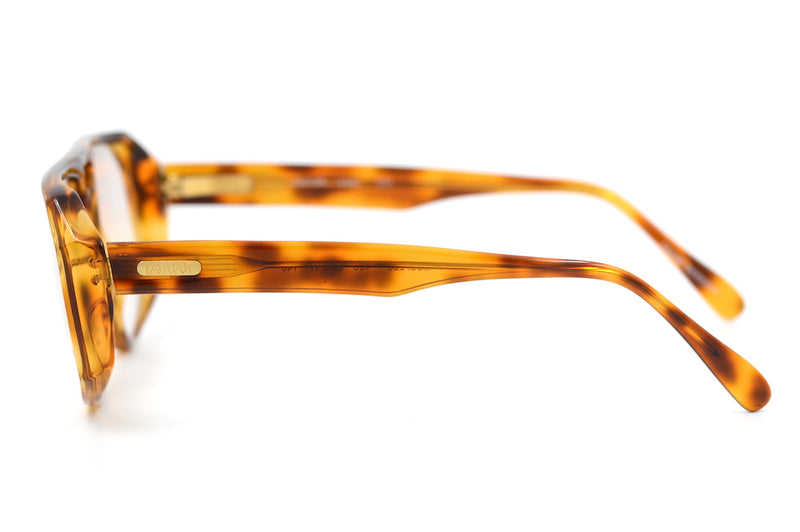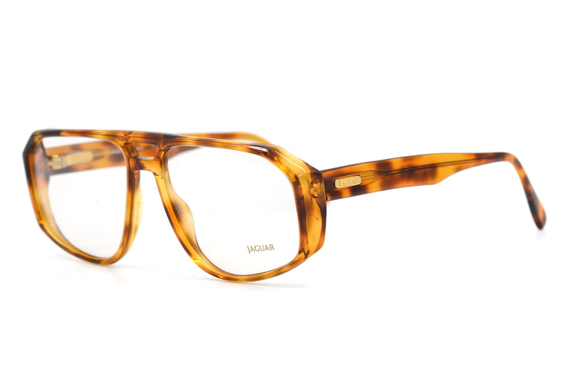 New old stock Jaguar 225 in colour 490. Manufactured in Germany in the 1980's, this stylish frame is available in two sizes. The aviator shape is cool and has a double bridge bar for strength and style. The warm mottled acetate has a lovely polished finish and the left side features the Jaguar signature. This shape could really work as Custom glasses or sunglasses.