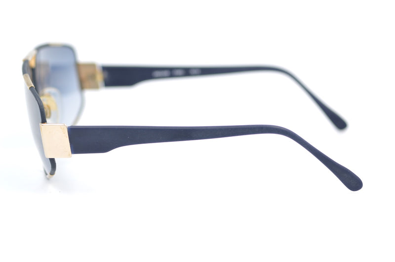 Jaguar 717 310100 vintage sunglasses. Manufactured in Germany these luxury sunglasses are new old stock. Navy frame with leather trim to the front and gold metal detail. Super stylish mens vintage sunglasses.