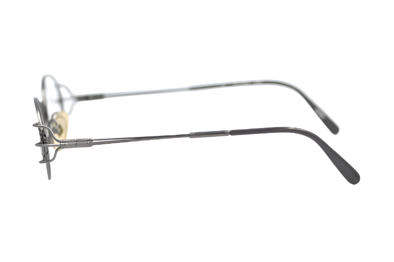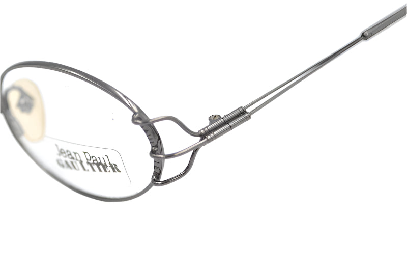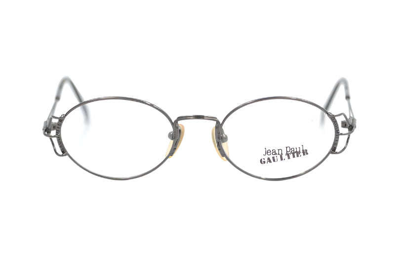 Jean Paul Gaultier 55-6104 vintage designer glasses. Manufactured in Japan in the 90s. A unisex design the dark silver frame features the Gaultier signature on the front temporal edge. The detail that connects the front and sides gives a steampunk feel to the frame. High quality frames. Vintage Jean Paul Gaultier glasses and sunglasses we're mostly produced between 1991 and 1997, in Japan by a manufacturer called Murai. They had a steampunk, avant-garde industrial feel to the designs. Celebrities such as Tupac, Rhianna, Lady Gaga and many more have been spotted wearing Jean Paul Gaultier eyewear.