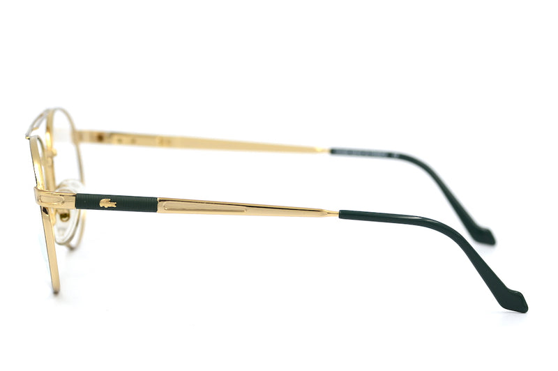 Manufactured in France in the 1990's we have Lacoste Classic 7101 F. We love the racing car green detail on this frame, from the temple tips to the side and front rims. This stylish frame is excellent quality a real sustainable frame designed to last. The Lacoste signature crocodile is visible on the temporal sides. Different size and colours available on request.