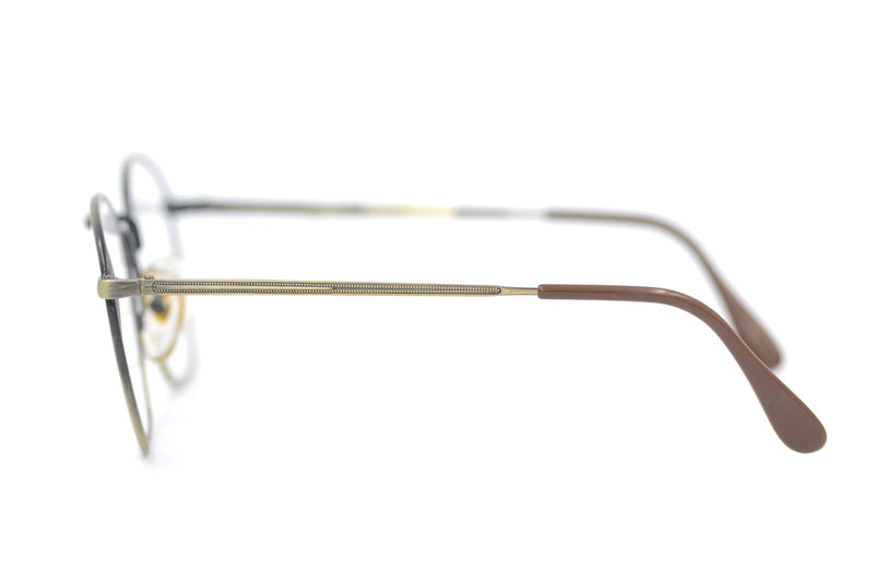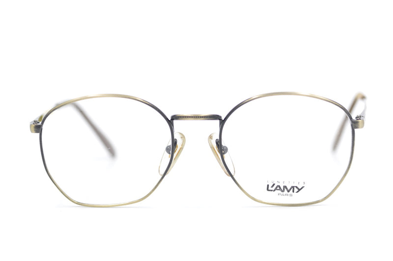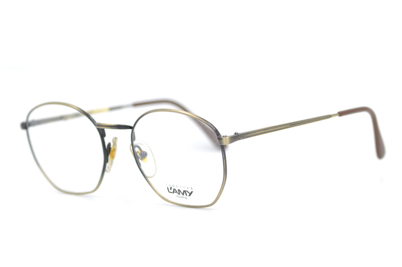 New old stock L'Amy Hampton. Manufactured in France in the 1980's this metal frame is currently trending. The brushed antique finish is simplistic yet stylish and this is easily regarded as a unisex frame.