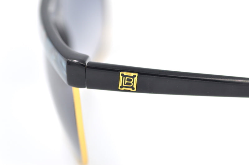 New old stock Laura Biagiotti P30 vintage sunglasses. Manufactured in Italy in the 80s this combination frame is a really bold square/shield shape. The frame features a dominant marbled acetate brow with high set black temporal sides and a gold metal lower front rim. A stylish rare and unusual frame, for someone who likes something a little different. The Laura Biagiotti emblem can also be seen on the sides. 100% UV protection with grey graduated lenses. Laura Biagiotti was an Italian fashion designer, born in 1943 and held her first fashion show in 1972. The House of Biagiotti fashion brand is one of the biggest in Italy.