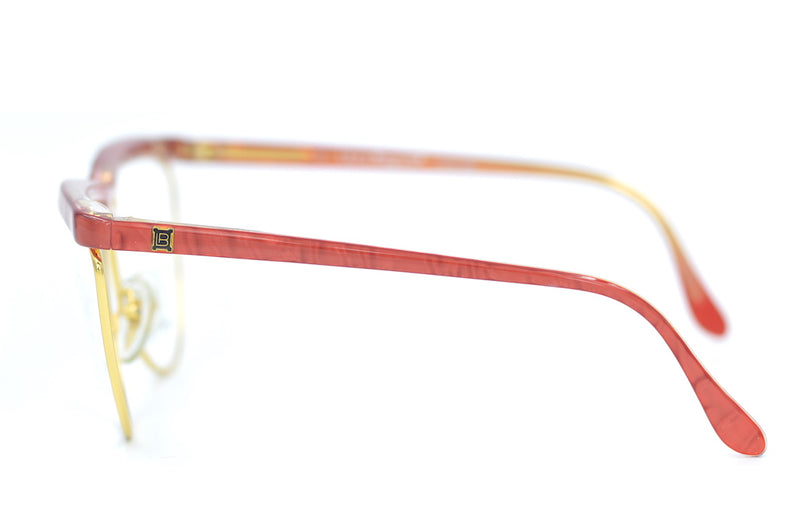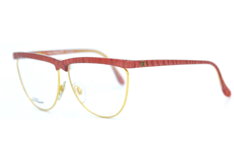 New old stock Laura Biagiotti V88 vintage glasses in colour 358. Manufactured in Italy in the 80s this combination frame features gold polished rims, with a strong red textured brow and temporal sides. A beautiful striking frame, for someone who likes something a little different. Laura Biagiotti was an Italian fashion designer, born in 1943 and held her first fashion show in 1972. The House of Biagiotti fashion brand is one of the biggest in Italy. Also available in brown.