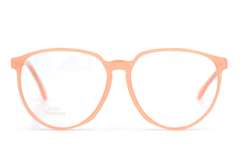 New old stock Licefa Record 1980's oversized vintage glasses. This peach acetate frame features a keyhole bridge and white stripe detail to the temporal sides. Incredibly on trend, this vintage glasses frame was handmade in West Germany. Stylish sustainable glasses not to be missed.