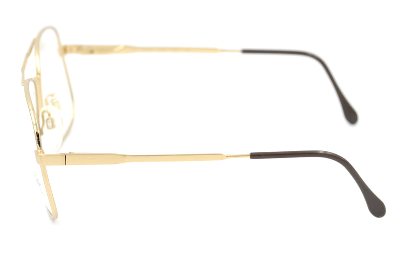 Manufactured in Italy we have this new old stock Luxottica 1041 frame, fitted with original demo lenses. This classic style and what is seemingly becoming a more unisex style, this gold metal oversized frame is incredibly cool. The frame features a double bridge bar, adding both support and style to the frame. Luxottica first launched frames in 1971 and have manufactured for leading brands such as Rayban and Emporio Armani.