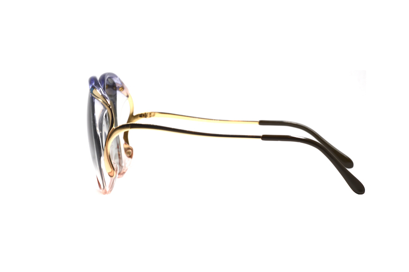 Luxottica 4507 vintage sunglasses in superb condition. The frames have been fitted with grey graduated lenses which offer 100% UV protection. The front of the frame is acetate and is also graduated in colour featuring crystal, lilac and pink. The temples are mid set which give great height to the frame and emphasise the oversized look. A stunning pair of vintage sunglasses in great condition with little sign of wear.