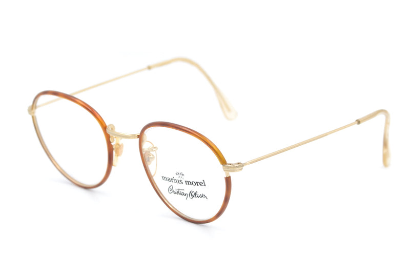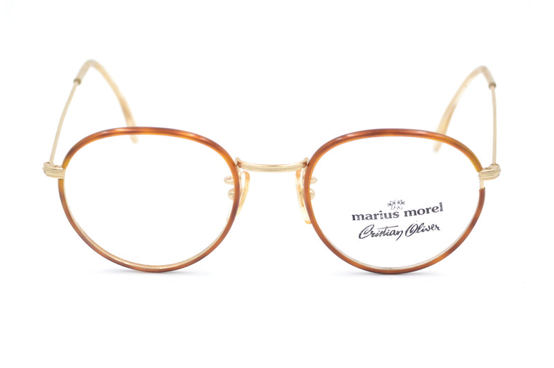 Manufactured in France this fabulous vintage frame comes from Marius Morel who has been in the industry since 1880. These typically styled vintage metal frames are gold with detailing to the bridge and temple sides, the lens rims have cellulose acetate covers. New old stock this frame is in fabulous condition.