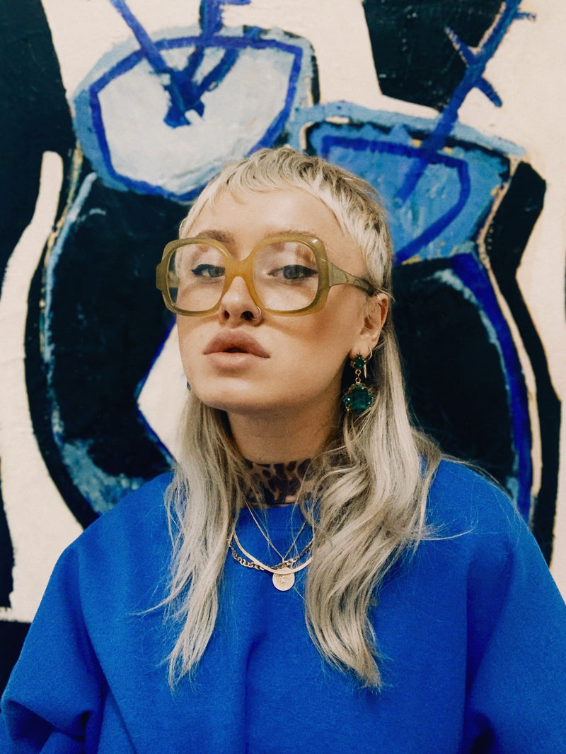 Marwitz 220 vintage glasses in colour 7302. Manufactured in Germany, this 70's oversized square glasses frame is right on trend. Strong durable and stylish, this frame looks great as vintage glasses or sunglasses. Please note model wears same frame in a different colour.