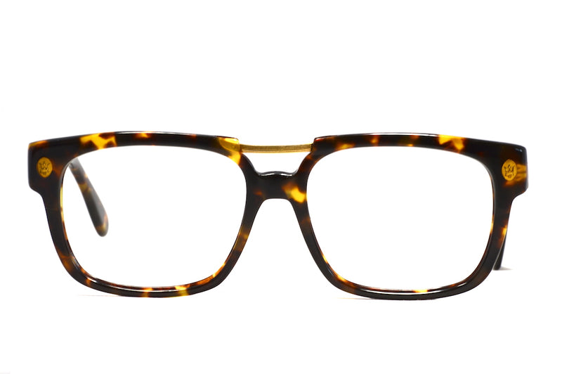 Maserati 6133 vintage spectacle frame hand made in France. This thick rimmed tortoiseshell acetate features the Maserati emblem to the temple edges, a gold coloured double bridge bar and the Maserati signature to the temple sides. A stylish frame, the frame is in excellent vintage condition with little sign of wear. This frame could also double as a great pair of sunglasses.