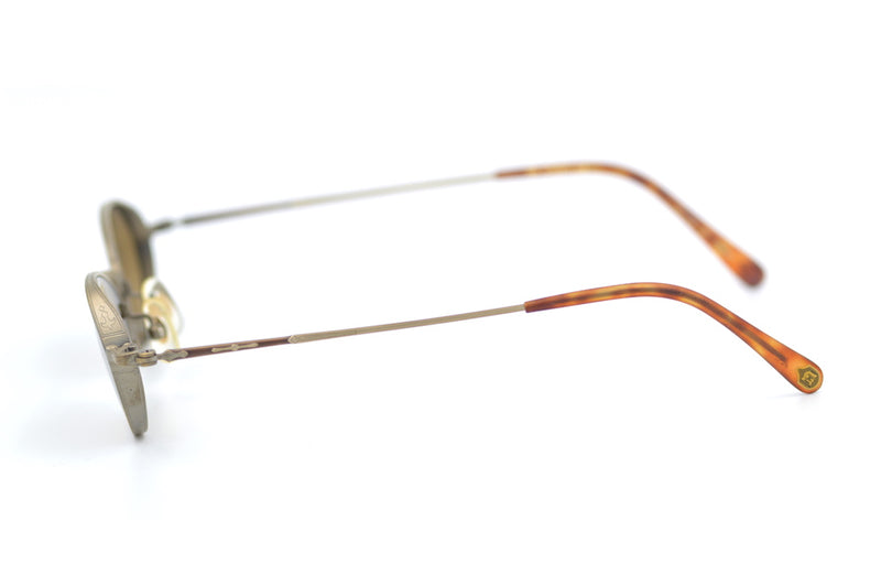 New old stock Matsuda 10628 in colour BR. This luxury vintage frame has an antique brown finish. The detailed engraving that covers the bridge and thick cased lens rims is fabulous, with a sense of victorian style about it. The brown lenses provide 100% UV protection. Matsuda frames are all manufactured in Japan and made of the highest quality materials. Many are titanium and the designs are unparalleled. All of our Matsuda frames are new old stock and originate from the 90s. Matsuda started in 1967 when Mitsuhiro Matsuda created the fashion house. Each frame requires up to 250 steps to be created and a single frame can take up to two years to manufacture . Shop the finest vintage sunglasses at Retro Spectacle.