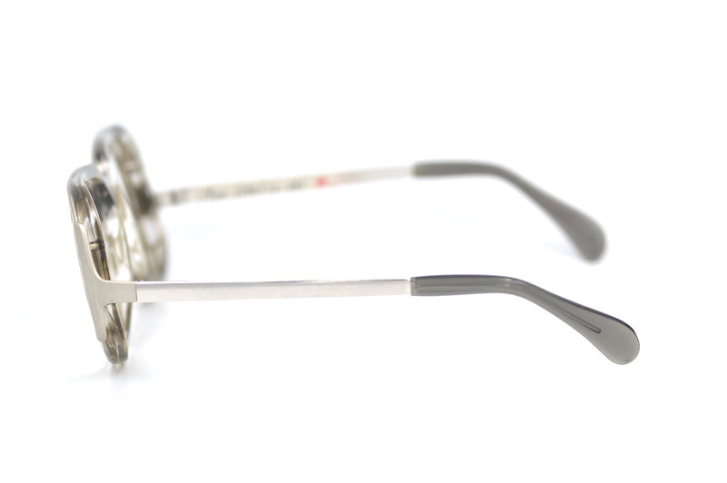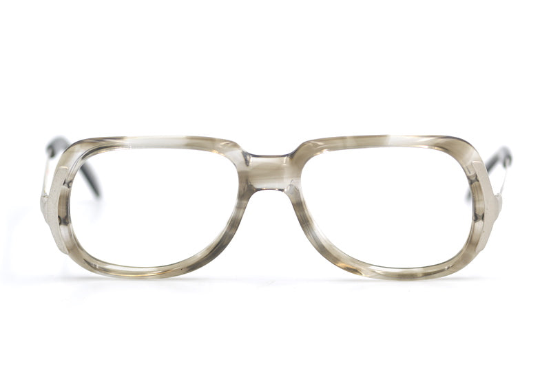 Menrad 2090 men's vintage glasses from the 70s. This true vintage frame is new unused stock, strong and durable, designed to stand the test of time. Proper engineering, with high quality materials manufactured in Germany. The acetate front has a smokey brown finish. Matte silver detail sits on the front temporal edge, whilst the temporal sides are polished silver. Shop the best selection of mens 70s glasses online at Retro Spectacle.