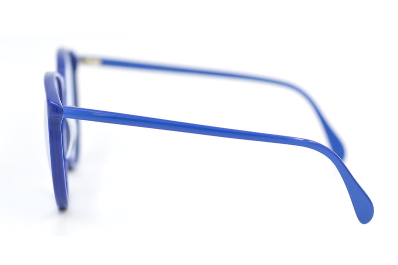 Stand out from the crowd in this electric blue oversized frame by Metzler. Manufactured in Germany in the 80s, Metzler 1170 in colour 628 is a stunning frame. Currently fitted with glass lenses that house a blue fashion tint. High set temporal sides help to accentuate the oversized shape.