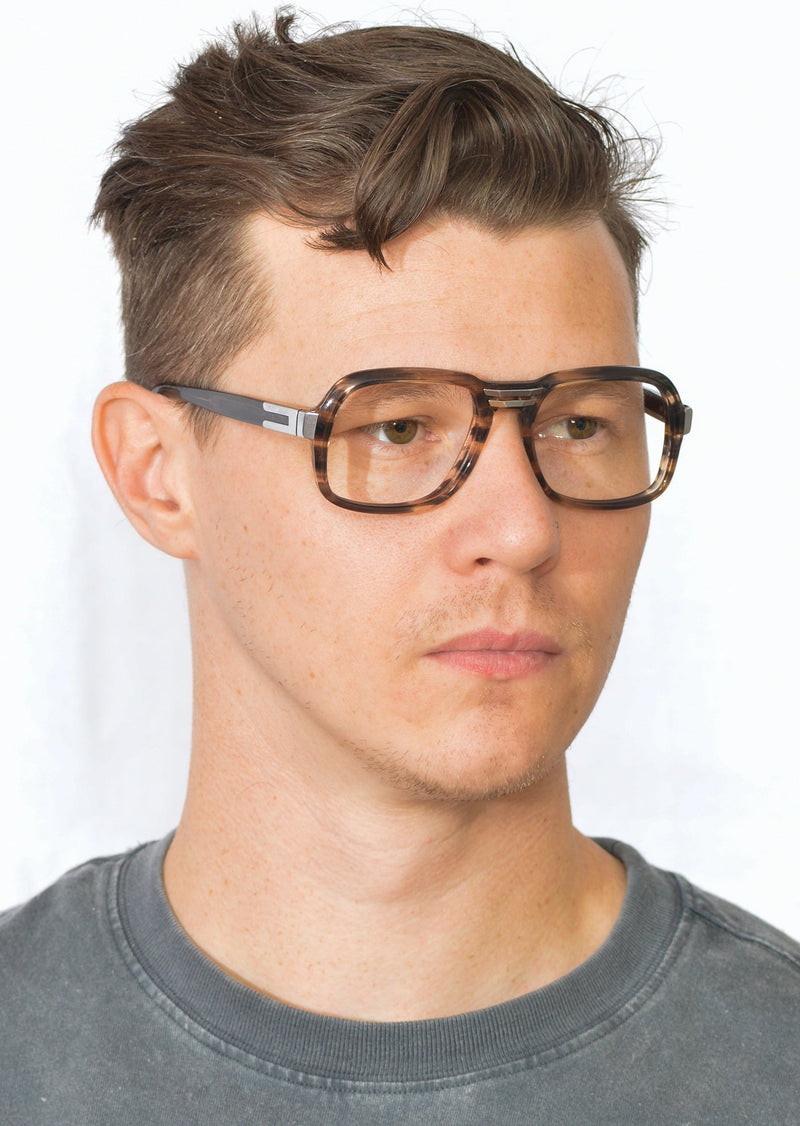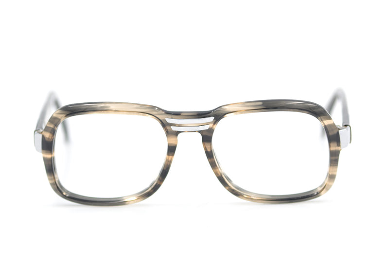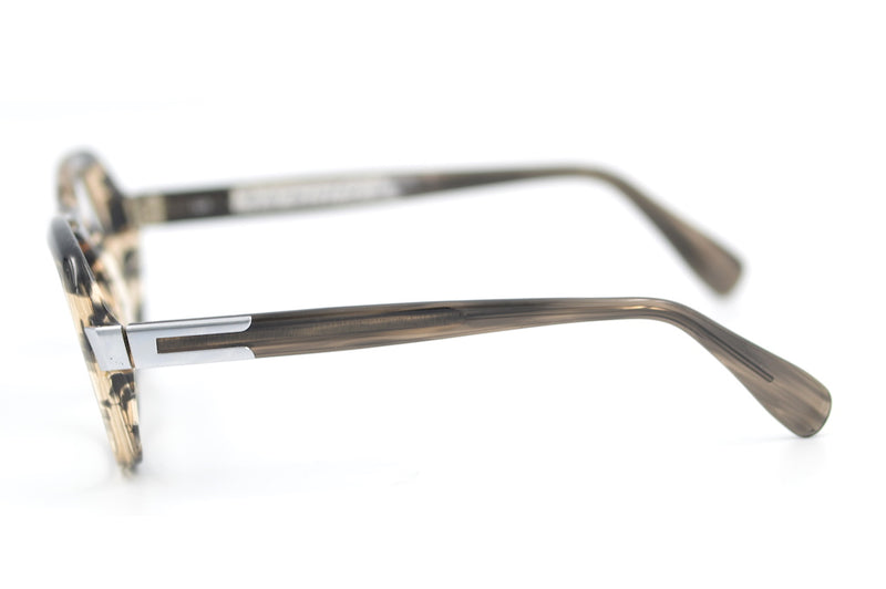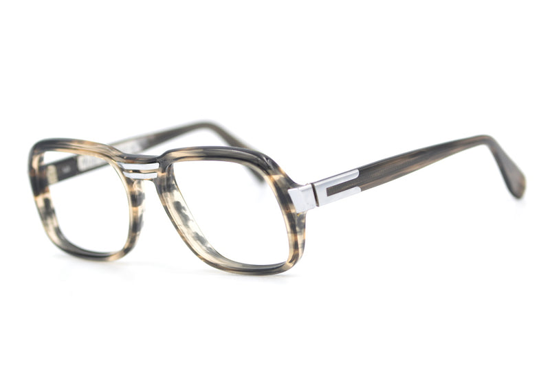 New old stock vintage Metzler glasses from the 70s. Metzler 3527 is a wonderful example of the masculine frames manufactured in the 70s. Strong and durable, the bold acetate features a wonderful smoked effect. Silver metal detail features on the bridge and temporal sides, adding interest to this fabulous vintage frame.