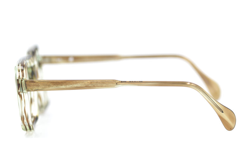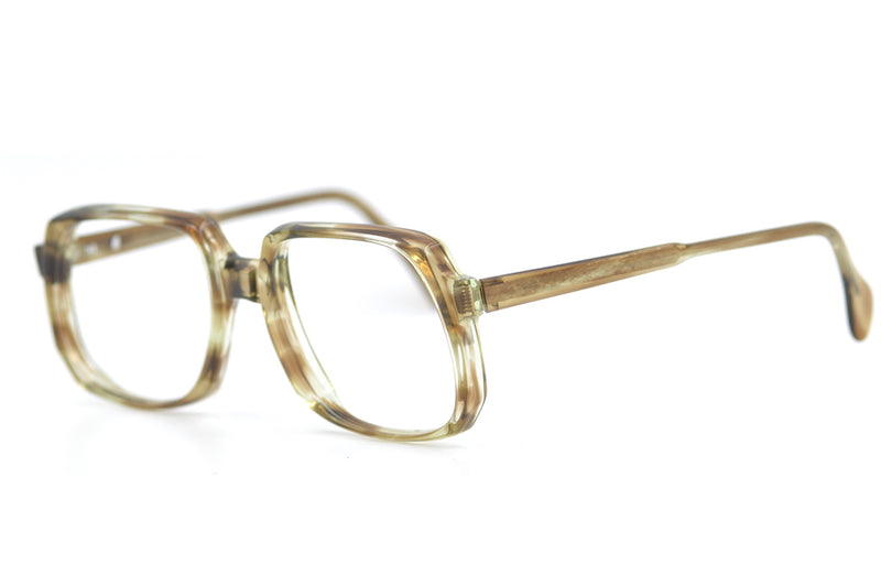 Metzler 4205 new old stock vintage glasses in colour 810. Manufactured in Germany, this frame is high quality, and designed to last. The brown mottled finish is soft and the frame edged slightly angular creating a great unusual shape. Vintage designer eyewear at Retro Spectacle.