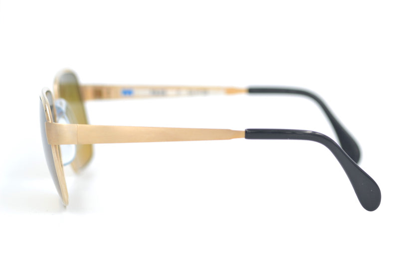 Show stopping frames from Metzler Germany. Metzler 7636 is new old stock from the 70s. These frames were designed to last and manufactured to the highest standards. The frame is a combination of polished and brushed metal. The broad bridge is a real feature and is fitted with a comfort bridge, which distributes the weight more evenly across your nose. The lenses are out of this world in a green/amber fade with 100% UV protection. 70s sunglasses not to be missed.