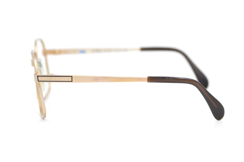 Metzler 7760 new old stock vintage glasses in colour 017. Manufactured in Germany, this frame is really high quality, and was built to last. You can feel the quality, when you hold them, super robust. New unused vintage stock. Brushed gold frame with fixed bridge, which is very comfortable. A very stylish frame, with no branding. Also available in a larger size.