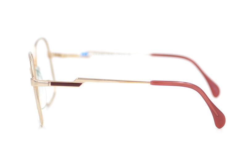 Metzler Gissy 7150 vintage glasses. Manufactured in Germany in the 70s. Suer cool retro design, the shape is very 70s. Red lacquered detail can be seen on the bridge and temporal sides. New unused stock. Frame is fitted with a comfort bridge, and has been crafted to stand the test of time.