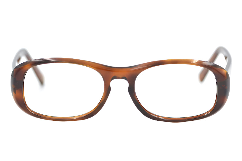 Missoni 0082 women's designer glasses in colour 121. This oval shaped brown mottled frame features a keyhole bridge and the Missoni signature in gold on the left side only. New unused vintage stock, manufactured in the 90s in Italy.