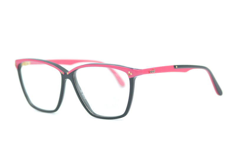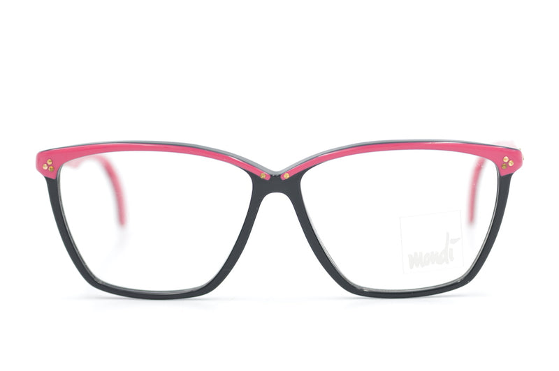 Manufactured in Germany we have Mondi 5025 in colour 791. This black and pink frame is fun and a great way to introduce a flash of colour to your frames. New old stock. The left temple side features the Mondi signature.