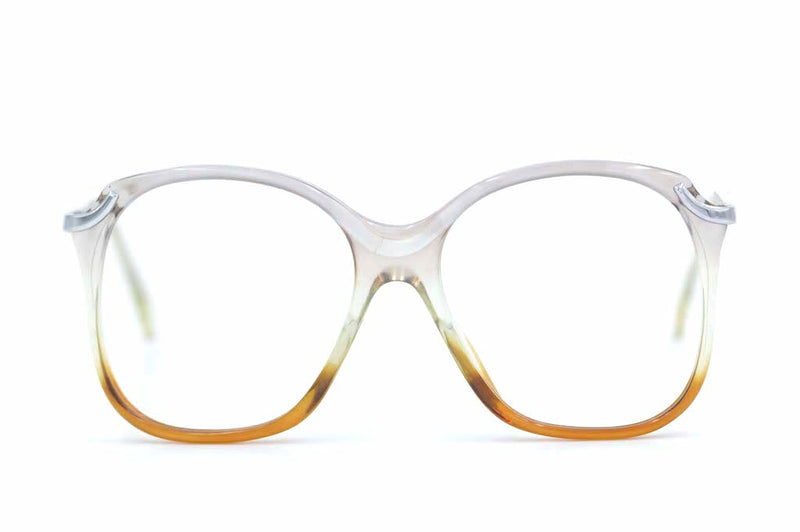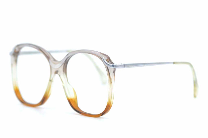 Manufactured in Germany we have Neostyle Fashtrend 7. This oversized square acetate frame transitions from grey acetate at the top to brown at the bottom, a fabulous colour-way. Silver polished metal sides are high set adding depth to this 70's oversized glasses frame.
