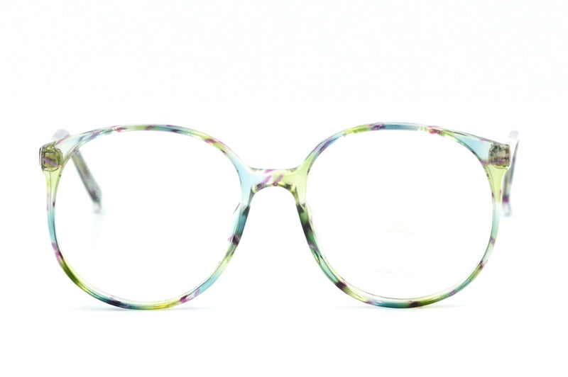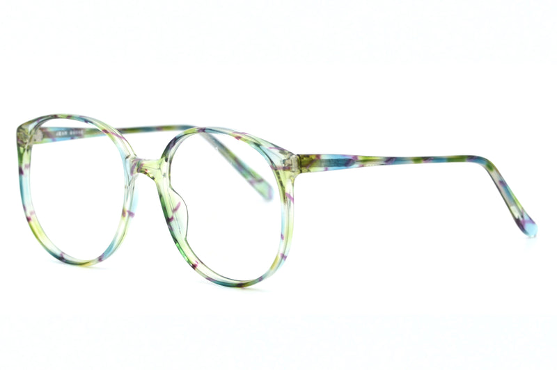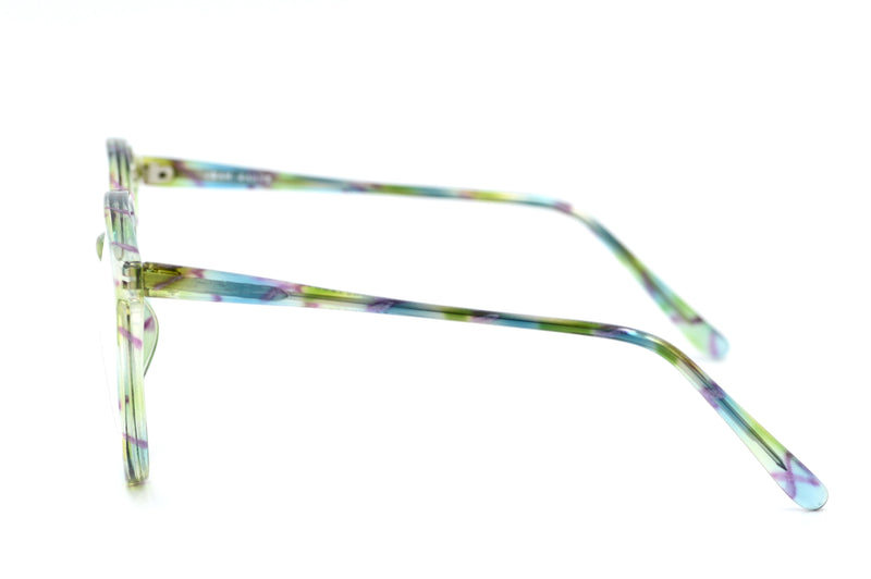 New old stock Jean Garre, New Amsterdam vintage glasses. Original 1980's vintage glasses in excellent condition and fitted with original demo lenses. This acetate frame features a pastel green and blue mottle effect. Stylish and simplistic, sustainable eyewear. Prescription lenses available from £29.00.