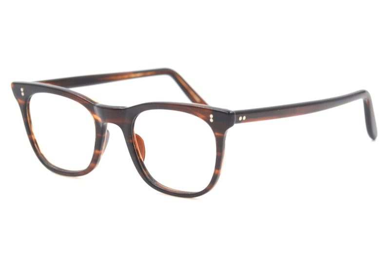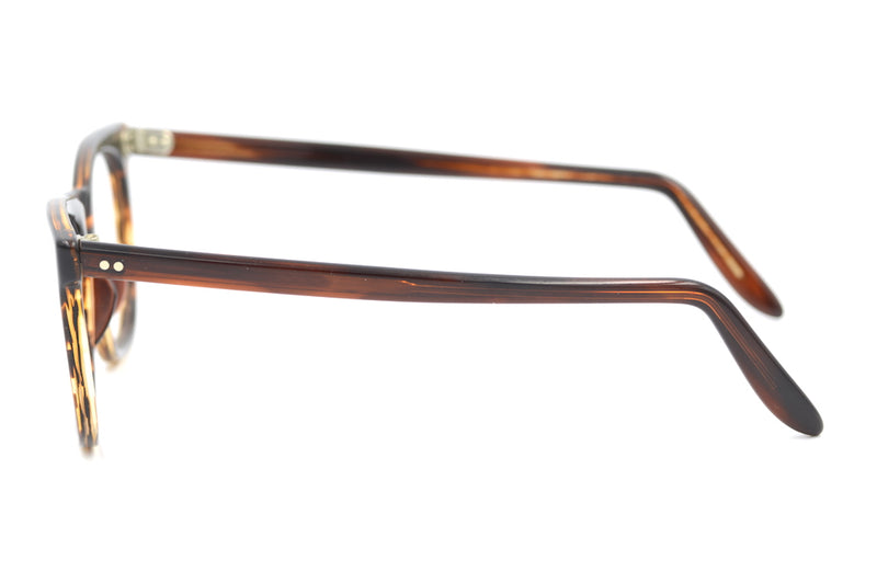 NHS 524 in dark brown mottle. A stylish and popular model at Retro Spectacle, what was once a frame for the masses, is now highly desirable. Manufactured in the 1960's in England, this frame is in excellent vintage condition. Well made, silver pin head rivets can be seen to the front and temporal sides. The frame features the engraving NHMW on the inside front and right temporal side, a sign of authenticity. A classic frame not to be missed. Prescription lenses available from £29.00.