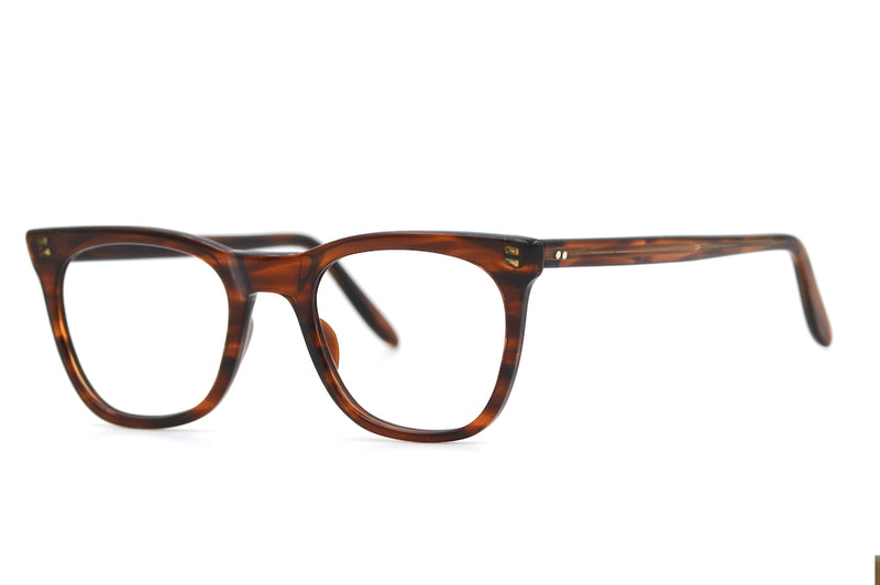 In superb condition with sign of gentle wear we have NHUK BRN. This original vintage frame comes from the NHS frame day's The inside of the frame is engraved NHUK . The frame was manufactured in England and is made of brown mottled acetate. Silver pin head rivets can be seen on the temporal sides. We regard this as a unisex frame, a real all rounder, it suits men and women alike, and looks great as spectacles or sunglasses.
