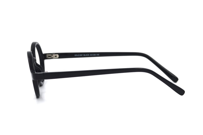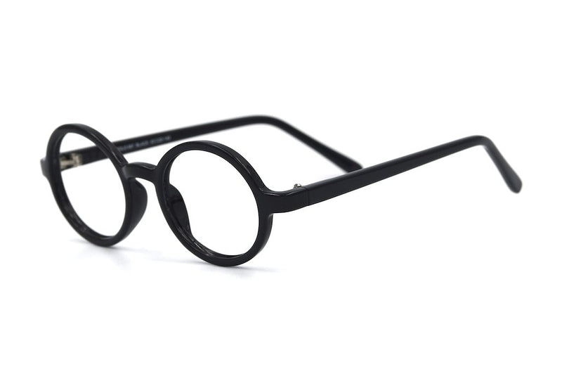 In superb condition with little sign of wear we have Noir, a round retro glasses frame. This reproduction frame has clearly taken inspiration from vintage frames of the past. The temporals are mid set, emphasising the round shape of the frame. A fabulous pair of sustainable, fashionable, retro glasses not to be missed. Perfect for reenactment. Prescription lenses available from £29.00.