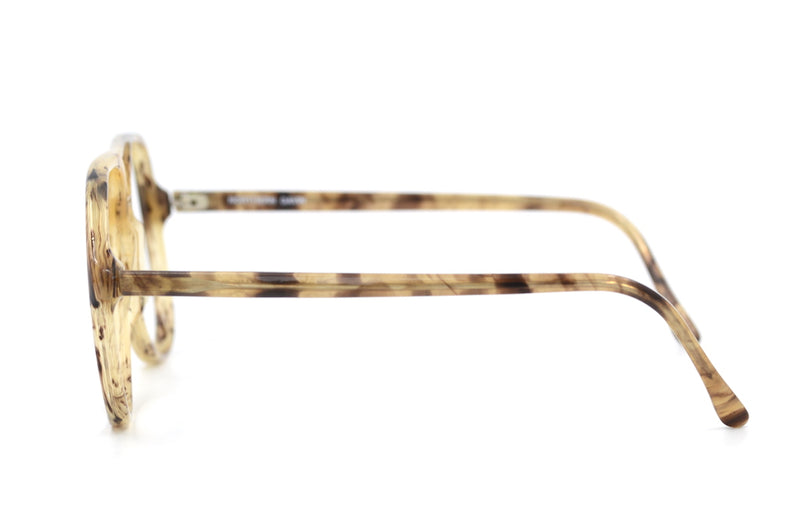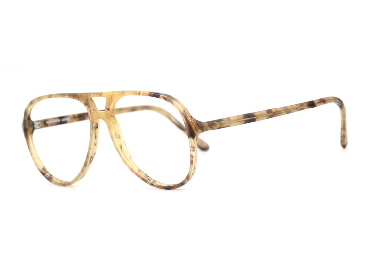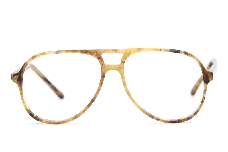 From the North of England? Called Gavin? This could be the perfect frame for you. Manufactured in England, this new old stock frame is made of light brown mottled acetate. Aviator in shape, the frame has mid set temples and a double bridge bar for added strength and style. A sustainable vintage frame, that would look fabulous as glasses or sunglasses.