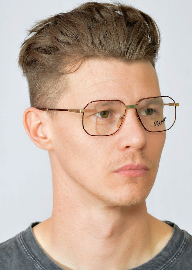 Morris by Persol in colour BR is a cool retro glasses frame. Manufactured in Italy, in the early 90s this stylish metal frame has a mix of polished gold and brown mottled rims. The Persol emblem is engraved on the temporal sides. With metal frames making a resurgence, this stylish frame will no doubt prove popular.