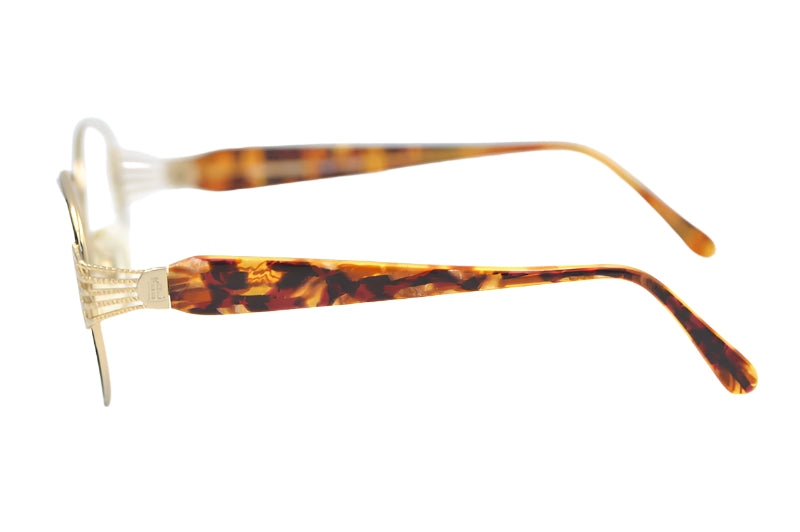 Pierre Leroc 953 women's vintage glasses. Manufactured in the 80s, this combination frame features a metal front with brown mottled acetate sides. Toggle nose pads allow adjustment at the bridge. New unused vintage stock.