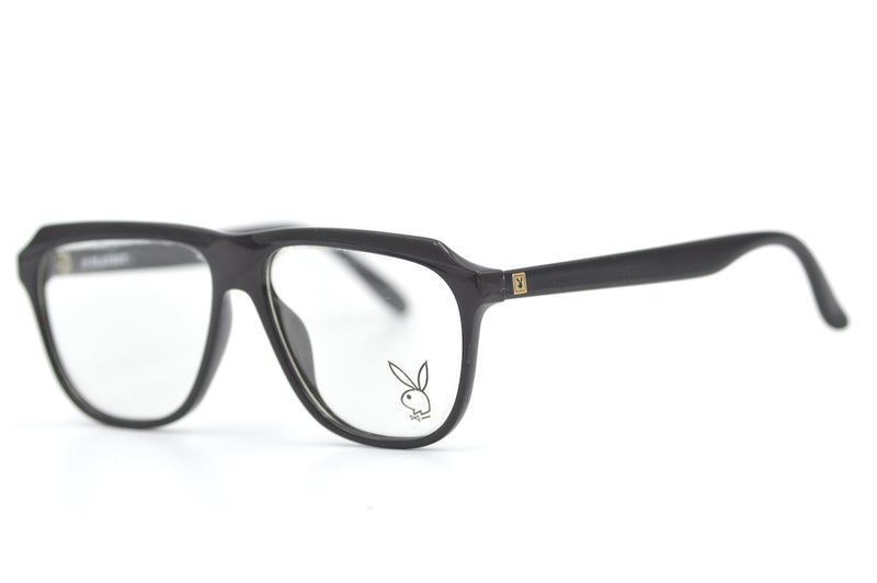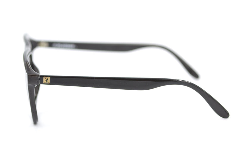 Playboy 4655 20 vintage glasses. Manufactured in Austria in the 80s, this stylish black polished frame is made of Optyl, a lightweight, durable material. The brows have a matte black finish, which can be seen on close inspection on the angular image view. The temporal sides feature the Playboy bunny emblem. A rare vintage frame not to be missed.