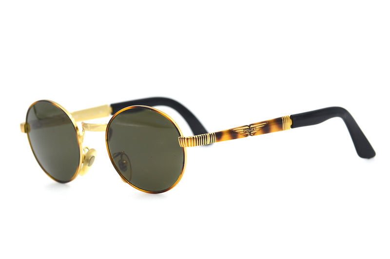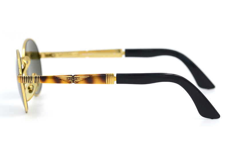 New old stock, Police 2165 vintage sunglasses in colour A29. Manufactured in Italy, this vintage designer sunglasses frame is in excellent condition. The G15 lenses have 100% UV protection and the left lens features the Police signature. The metal frame features a gold bridge, with tortoiseshell rims and temporal sides. The sides feature the signature Police emblem. Police launched in 1983. Known for big celebrity endorsed campaigns, they most recently teamed with Lewis Hamilton. Suitable for Custom lenses.