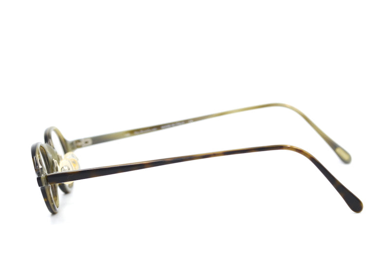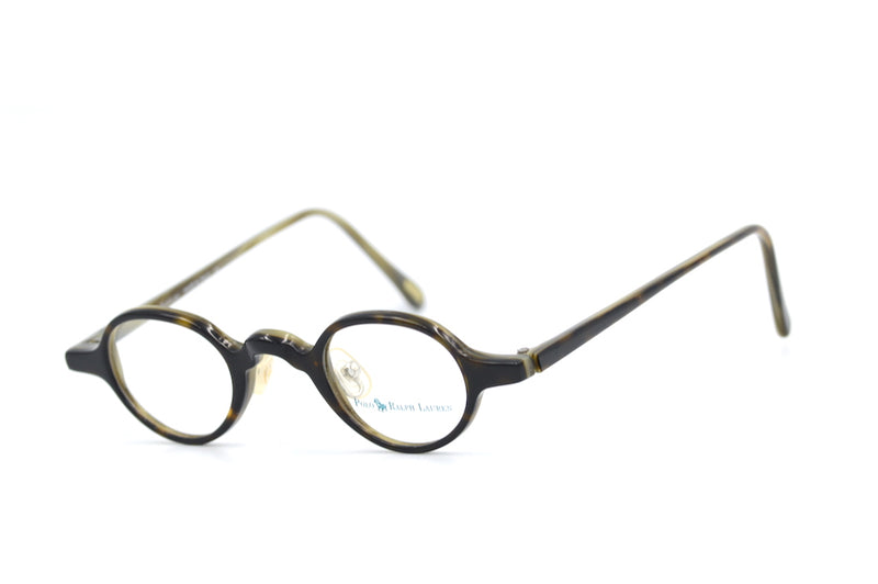New old stock Polo Ralph Lauren 403 half eye glasses. Manufactured in Italy, these vintage glasses are designed for reading. The bridge is wide allowing the wearer to position them lower down the bridge and peer over the top. The temporal sides are long to accomodate the lower position to which they are designed to be worn. The acetate is dark brown mottle and there is no branding to the exterior of the frame, perfect for reenactment.