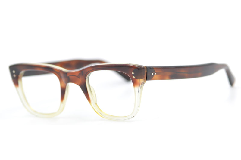 - Made in England by Merx we have Premier 67. This classic acetate frame features a combination of brown mottled sides and brows, with the lower rims being crystal. This on trend original vintage/retro frame features two pin head rivets to the temple front and sides, and a strong and sturdy seven barrel joint. A traditional style which has made a strong comeback. In fabulous vintage condition this frame shows very little sign of light wear.