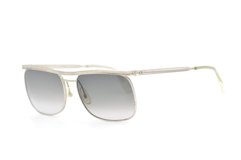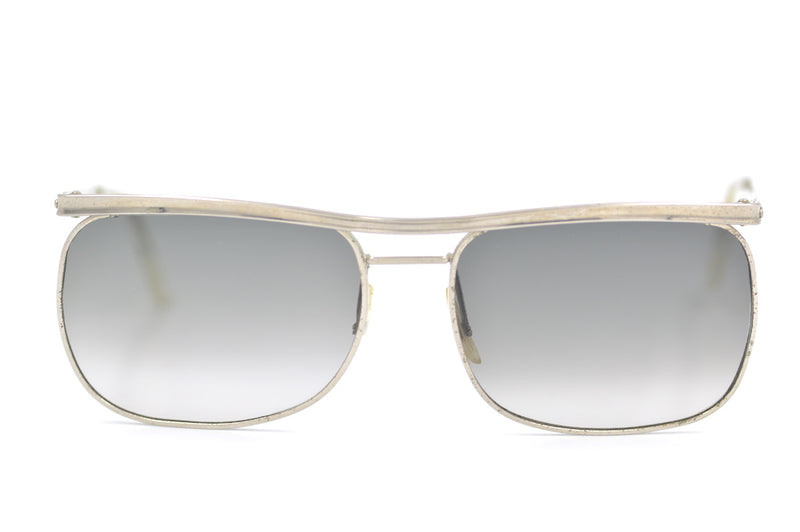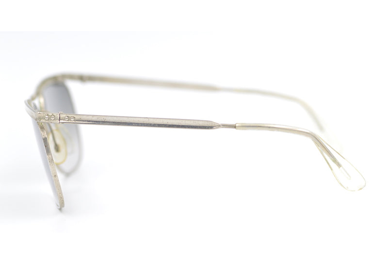 Quadro is a fabulous vintage sunglasses frame from Retro Spectacle. This stunning stylish frame has been fitted with new grey graduated lenses with UV protection. This silver frame is very similar to the Debbex frame as seen on Paul Weller. This frame features a double bridge bar and the lens is more rectangular in shape. A fabulous pair of Mod style vintage sunglasses in great overall condition - note a little tarnish on the frame but only on close inspection.